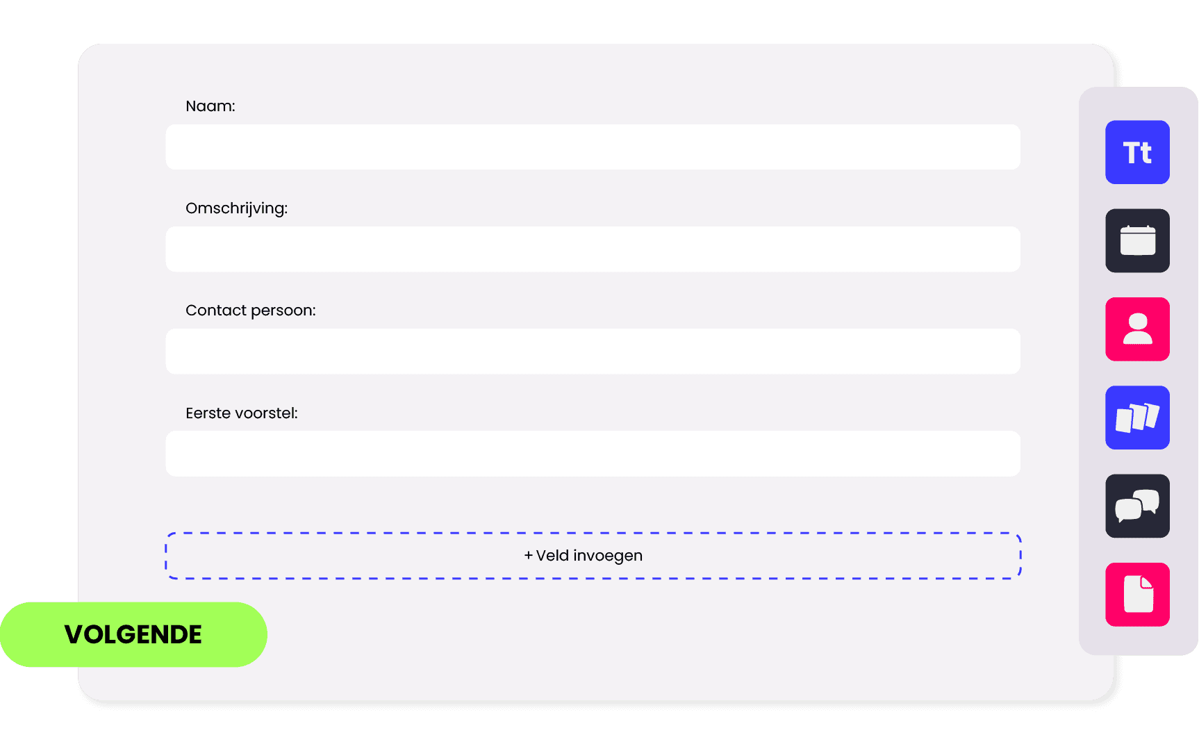 Maak eenvoudig formulieren op maat met onze drag-and-drop form builder. Voeg validatie, voorwaardelijke logica en slimme workflows toe, zodat elk verzoek automatisch bij de juiste persoon terechtkomt. Zo ontvang je altijd duidelijke en complete briefings.